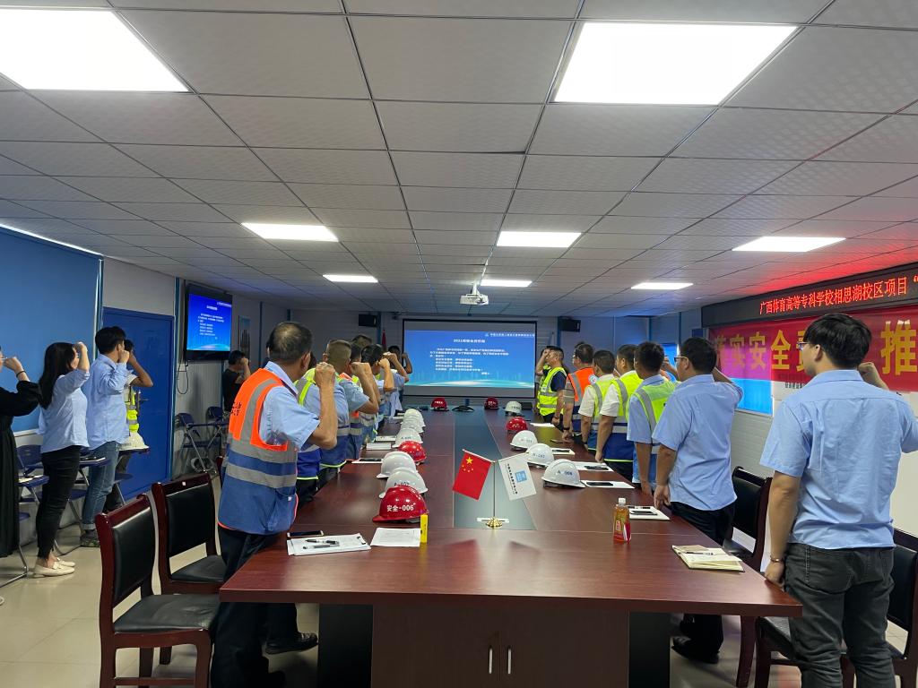 为深入贯彻习近平总书记关于安全生产重要思想,全面落实全国安全生产三年专项行动要求,5月31日,广西体专相思湖校区项目举行2021年“安全生产月”启动会,项目所有参建方及劳务分包公司主要负责人参会。本次活动将在6月1日-30日举行,首先由总承包单位安全总监对安全月相关文件和策划方案进行宣贯,全体参会人员观看安全生产教育微电影。最后项目经理林荣瑞、项目总监全奕帆发表讲话,重申安全生产月活动的注意事项。项目总负责人、新校区办主任曾庆光强调开展安全生产月活动的重要性,要求各参建单位加强监督检查和注重工作细节,全面贯彻落实国家相关文件要求。最后全体人员进行安全宣誓和签字,并到项目工地现场进行安全检查和隐患排查,确保安全生产月活动顺利进行。