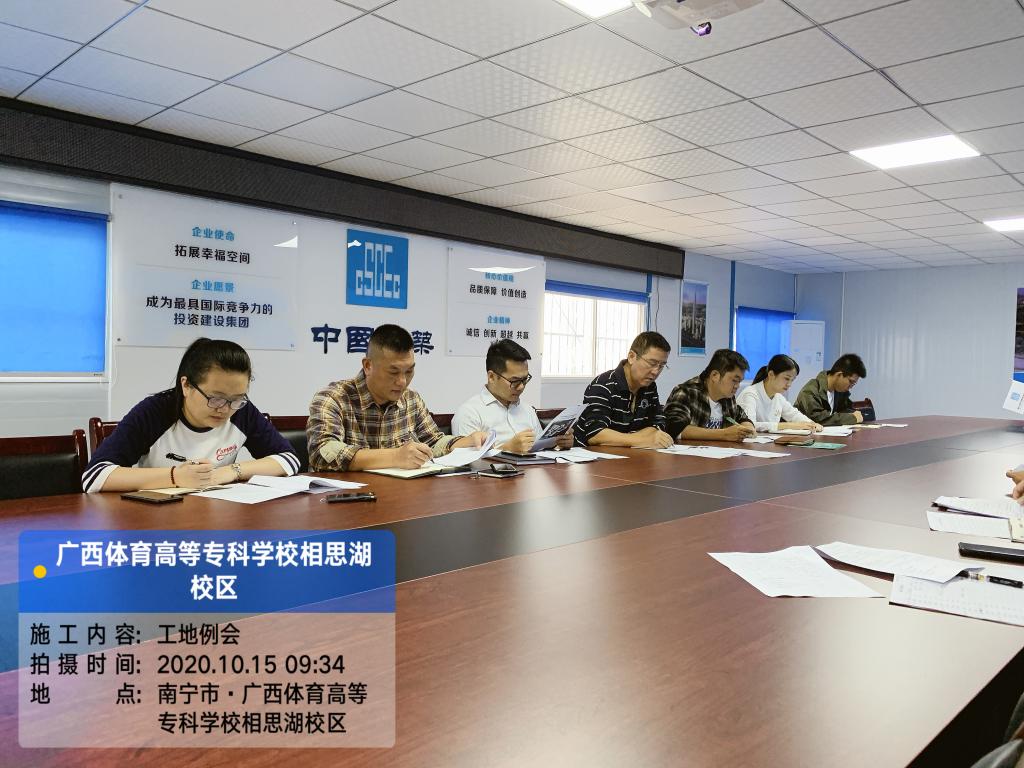 (十二)10月29日,新校区建设管理办公室在项目现场组织召开第六次现场例会。会议要求:总包公司按时上报土方施工进场计划方案,并做好环境治理工作,尽快将临建工人生活区规模和建设计划报全咨公司审核;设计单位于11月2日之前提交1#、2#宿舍楼基础选型报告给全咨公司审核,下周例会汇报年底项目进度可能达到的进展情况;勘测单位10日内出具1#、2#宿舍楼勘察报告;全咨公司继续协调总包施工单位和设计单位做好B地块施工组织计划;总包公司完成年底资金使用计划并报建设方审核;各方人员加强联系,提高工作效率。