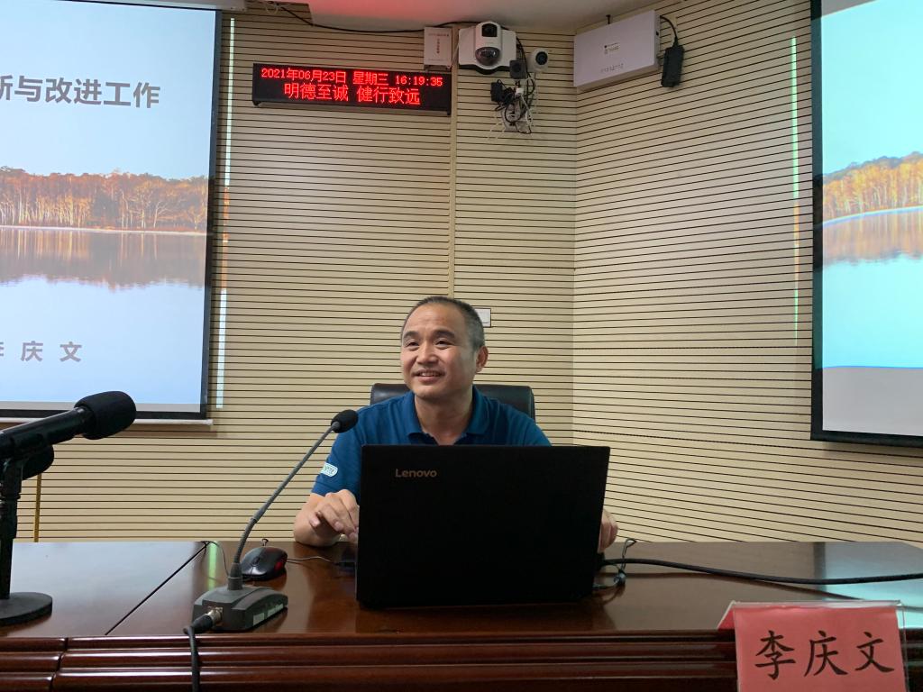 培训会上李庆文教授作了题为“职业院校内部质量保障体系诊断与改进工作的几个问题”的讲座,围绕诊改印象、目标链、标准链、质量诊改螺旋、诊断点和专业与课程诊改实践展开,既有理论指导又有实践经验介绍,有利于我校诊断与改进工作的持续推进。