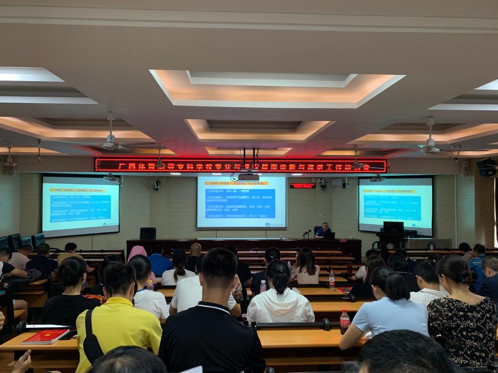 6月23日下午,我校专业与课程层面诊断与改进工作培训会在402报告厅召开。各学院分管教学副院长、各教研室主任、全体任课教师参加了会议。培训会邀请广西国际商务职业技术学院教务处处长、诊改办主任李庆文教授、博士进行专题授课。会议由质量管理办公室宁小春主任主持。