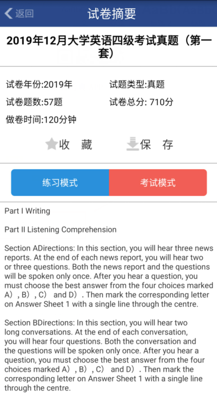 (任一试卷举例1:2019年12月大学英语四级考试真题(第一套))