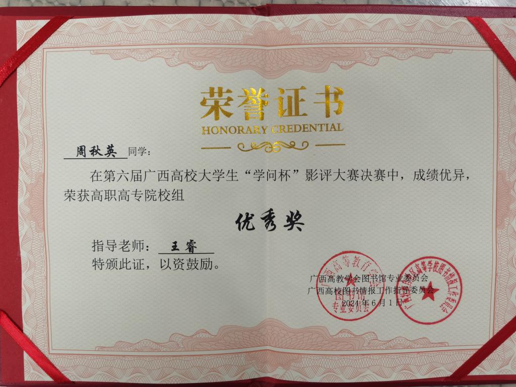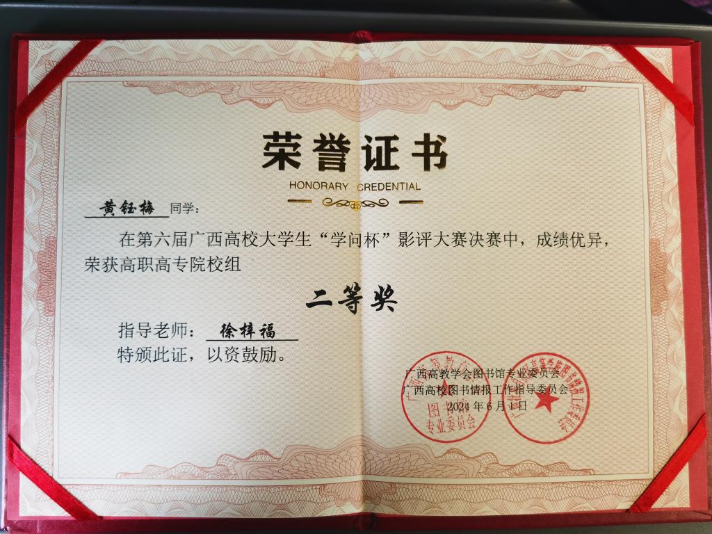 喜讯!我校2名学生在2024年第六届广西高校大学生“学问杯”影评大赛决赛中荣获佳绩