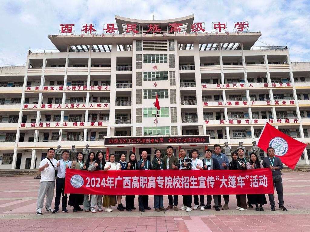 在此之前,11月26日至12月9日,为深入宣传教育部和自治区教育厅高职高专院校招生政策,我校积极参与了2024年广西高职高专院校招生宣传“大篷车”活动,由学工与招生就业处、体育运动学院、运动健康学院以及体育管理学院的5位老师分成4条宣传线路奔赴区内各地开展为期14天的招生宣传活动,给广大考生带去最新的招考资讯。据统计,我校5位老师在本次“大篷车”活动共走访了100余所学校,分发宣传册50000册,宣传用品50000份,招生信息传播面向17万的考生及老师、家长。通过举办教师交流会、招生宣讲会、设置咨询点等形式,让考生在“家门口”了解最新招考政策和院校信息,向考生宣传了广西高职高专院校招生政策和我校的办学特色。
