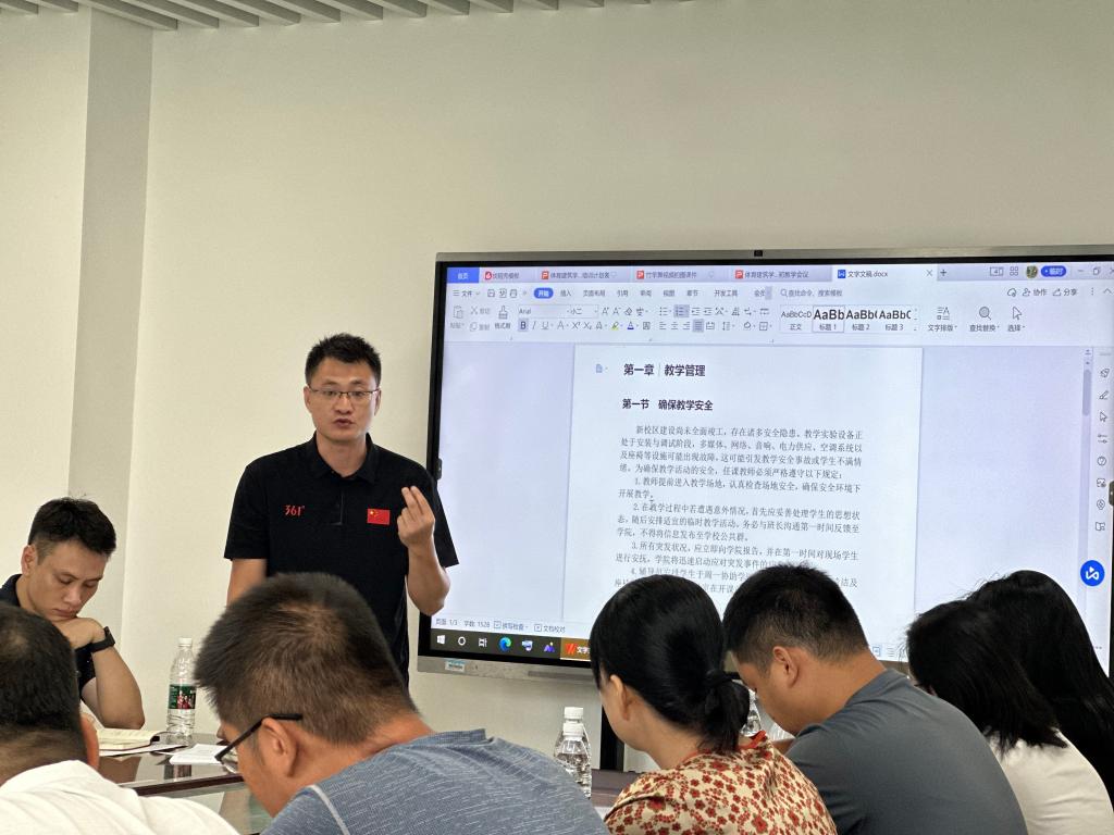 教学副院长谭翰哲对全体任课老师进行了教学工作重点培训。培训内容包括教学常规要求、课堂管理技巧、教学事故认定与管理办法、调停课、请假制度等。此外,谭翰哲副院长还对教学质量评估标准与方法进行了讲解,明确学校对教学质量的考核要求。