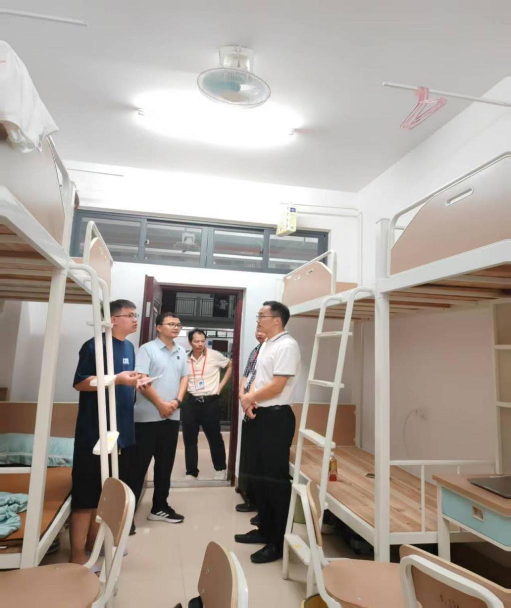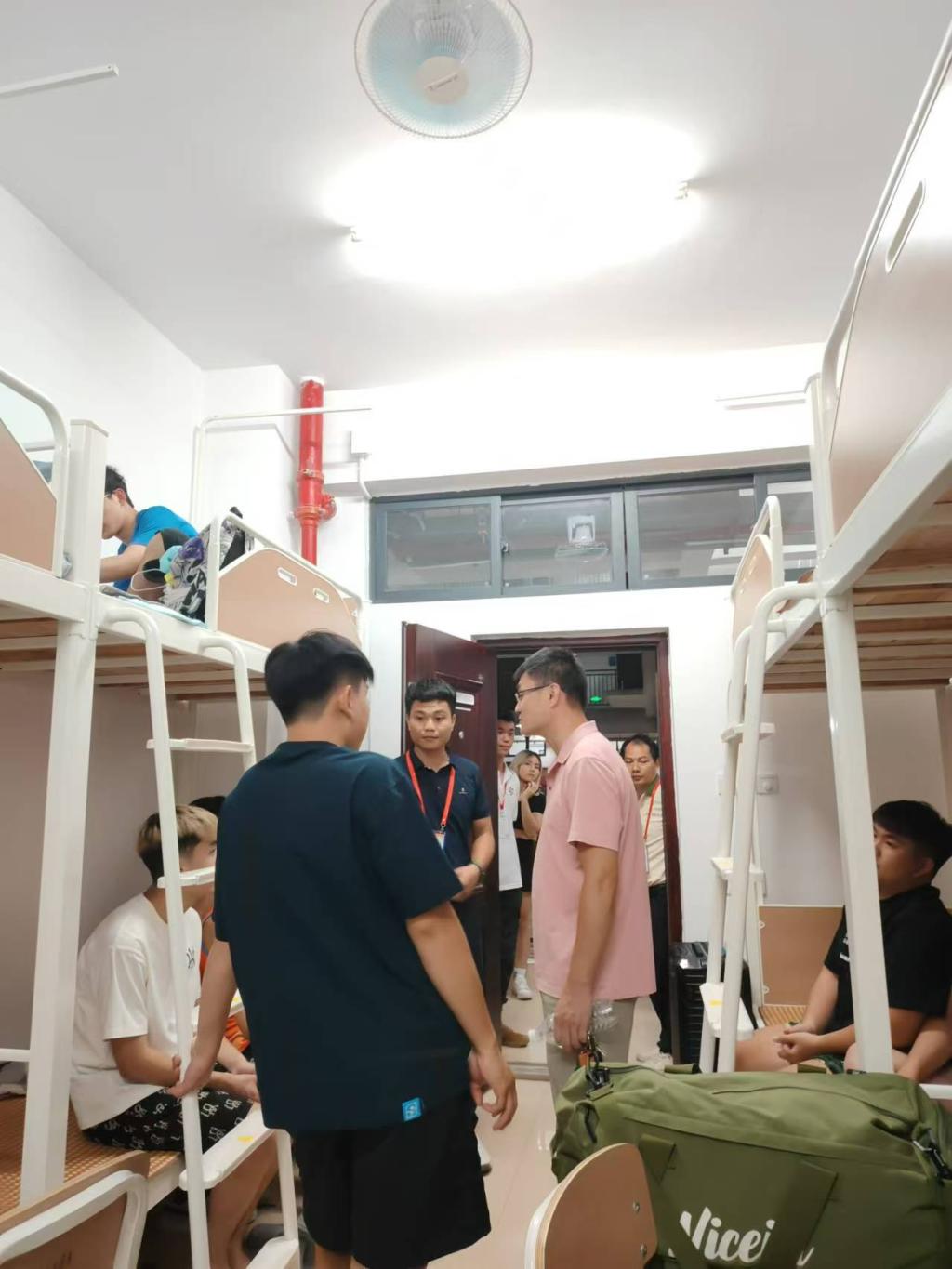 走访过程中,院领导和老师们对新生宿舍的基础设施进行了细致地检查,关切地询问了新同学的生活需求及适应情况。此外,老师们还提醒同学们宿舍成员之间应保持团结友爱,注意安全与卫生,共同营造一个良好的宿舍环境,以最好的精神面貌迎接大学生活。老师们的殷殷嘱托让新生们感受到了学院的深切关怀。