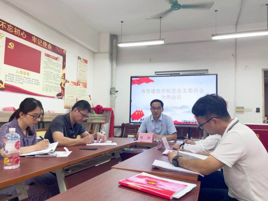 为进一步夯实党组织建设,充分发挥基层党组织的政治核心作用,增强基层党组织创造力、凝聚力和战斗力。10月27日下午,体育建筑学院党总支在学校长岗校区瑞兴楼422党员活动室召开党员大会。会议由党总支副书记赵世强主持。