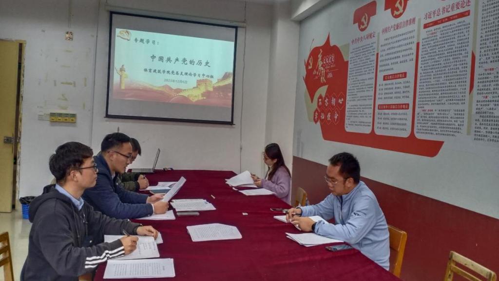 12月6日下午,体育建筑学院党总支理论学习中心组在长岗校区瑞兴楼418党员活动室开展《中国共产党的历史》专题学习。本次学习由陈铭书记主持,理论学习中心组成员赵世强、谭翰哲、黄秋瑜、覃宏山参加学习。