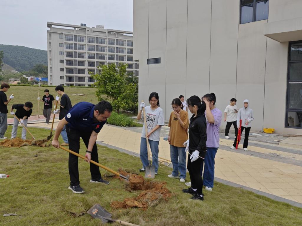 按照人员分组、工作区域划分,在支部党员们的带领下,大家手持铁锹、水桶,挥锹铲土、扶正树苗、浇水培土,个个热情高涨地投入到植树活动中。“绿水青山就是金山银山”,通过此次植树活动,师生们不仅仅身体力行地践行了生态环保意识,也为校园绿化建设增添了新的活力。