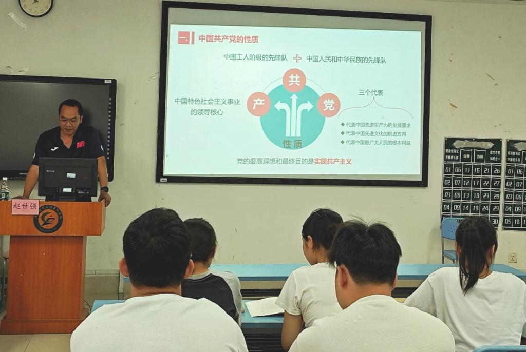2024年5月28日,学院党总支副书记赵世强同志在瑞兴楼205教室为我院第二期入党积极分子讲授主题为“中国共产党的性质、宗旨和最高理想”的专题党课。