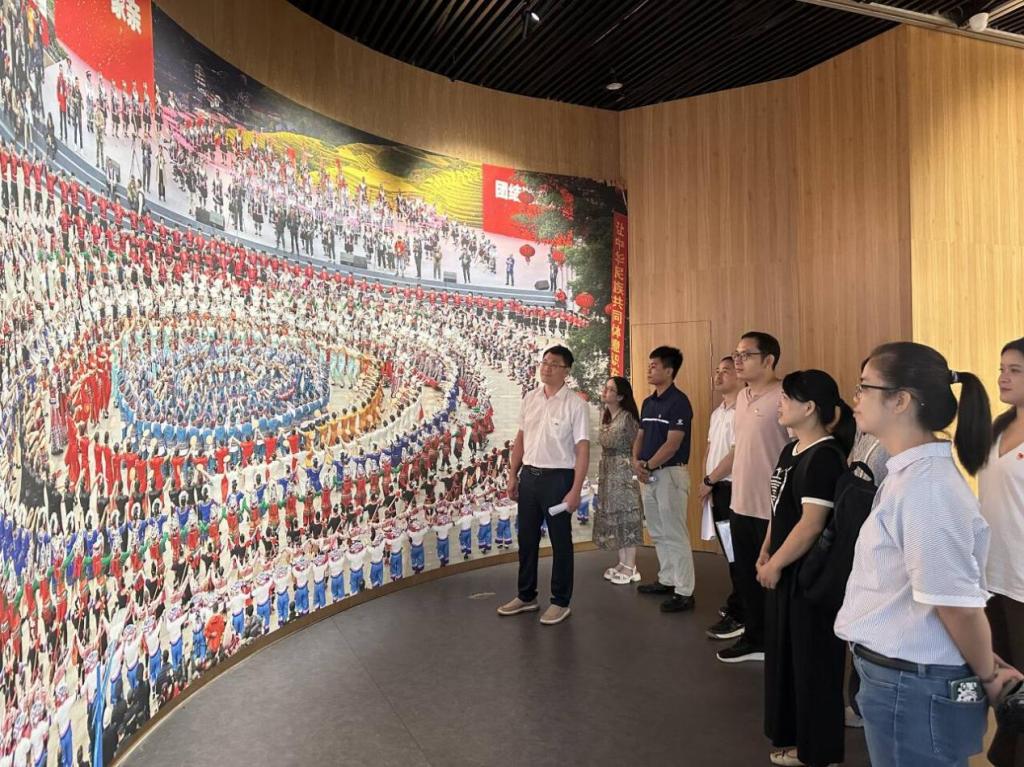 在讲解员的带领下,各位老师认真参观了广西铸牢中华民族共同体意识历史文化展。展览分为“共辟辽阔疆域”、“共书悠久历史”、“共创灿烂文化”、“共育伟大民族精神”四大部分,以文物实物、图文展示、多媒体沉浸式体验等方式,展示了广西各民族为中华民族、中华民族共同体、中华文明的形成和发展作出的重要贡献;讲述了广西各民族与其它地区各民族交往交流交融的生动故事,传承弘扬了广西民族团结基因;展现了在党中央的正确领导和党的民族政策的光辉照耀下,广西民族团结、社会稳定、边疆安宁的局面得到不断巩固发展的良好态势。