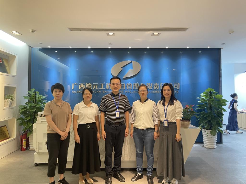 为深入了解工程造价行业的最新动态和就业行情,5月21日,我学院工程造价教研室肖颖、庾薇、韦宏华老师一行赴广西德元工程项目管理有限公司(以下简称“广西德元”)开展调研与交流活动。