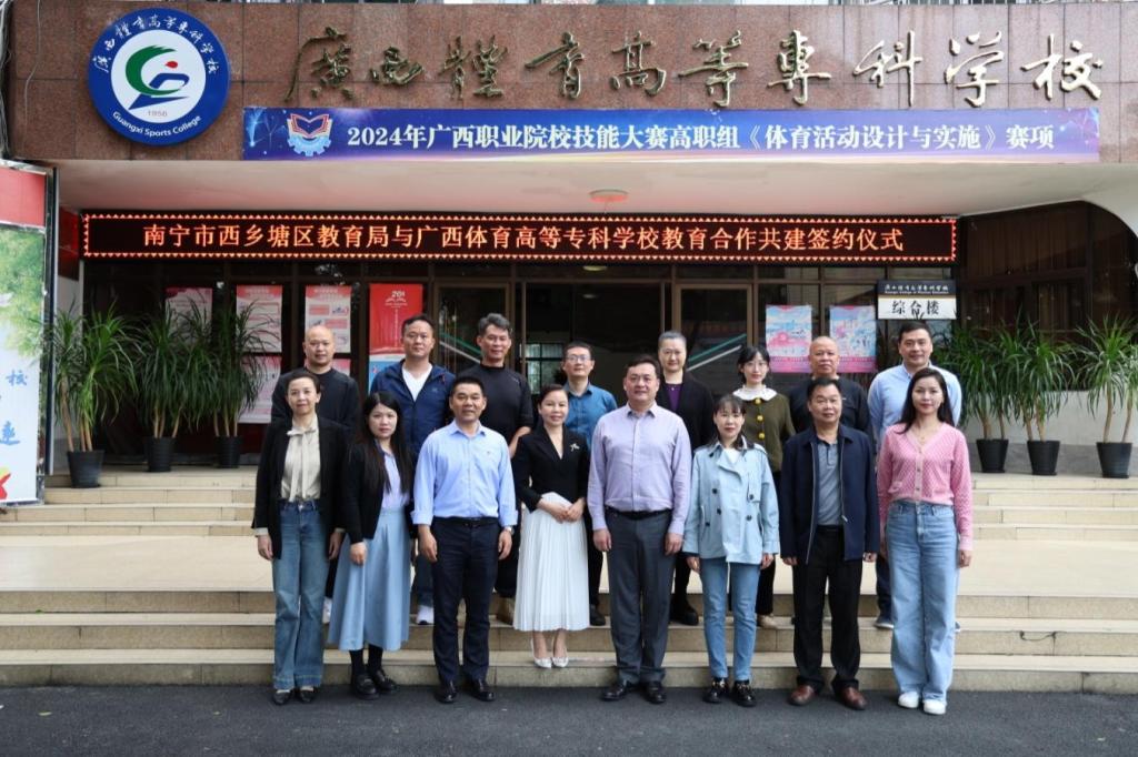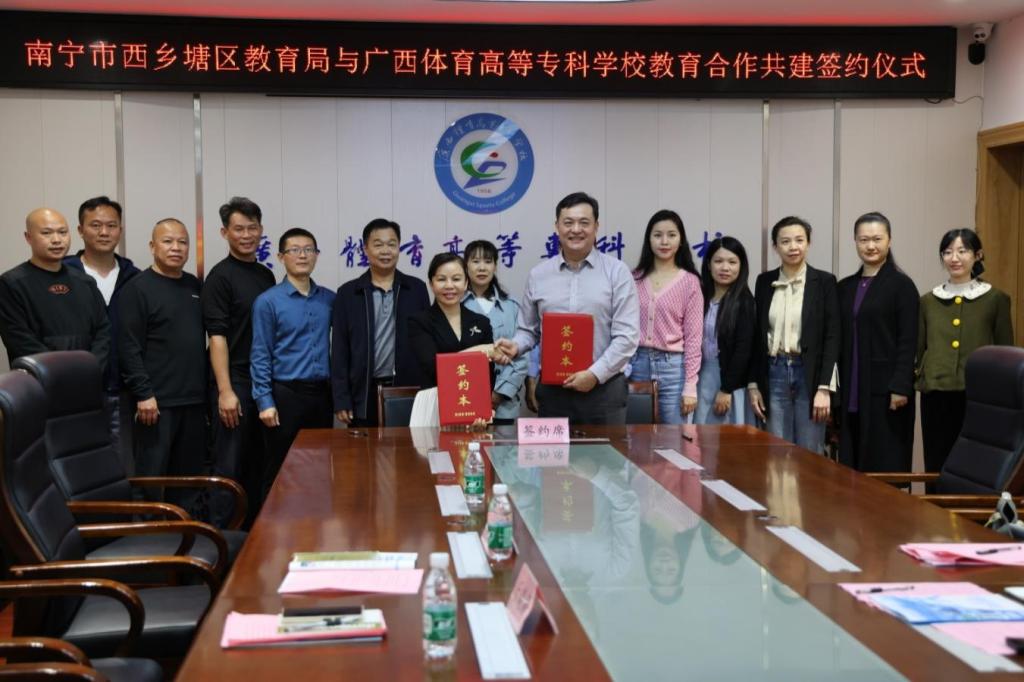 为有效践行国家产教融合相关政策,推动政校协同育人工作,4月8日,南宁市西乡塘区教育局与我校在公园路校区第一会议室共同签署教育合作共建协议。学校党委副书记邱团,南宁市西乡塘区教育局党组书记、局长乐晓薇,副局长杨华良,教育研究室主任樊洪华,体育室主任黄漫,我校体育师范学院全体班子成员和教师代表以及全国运动健康产教融合共同体理事单位代表出席签约仪式。签约仪式由体育师范学院院长苏祝捷主持。