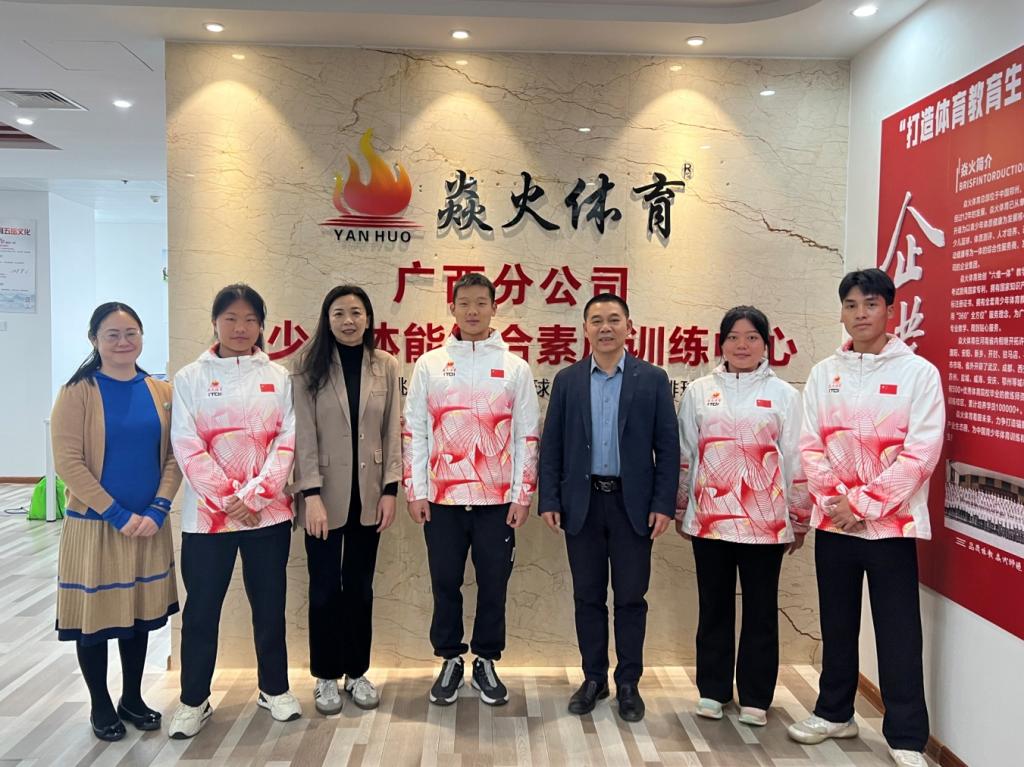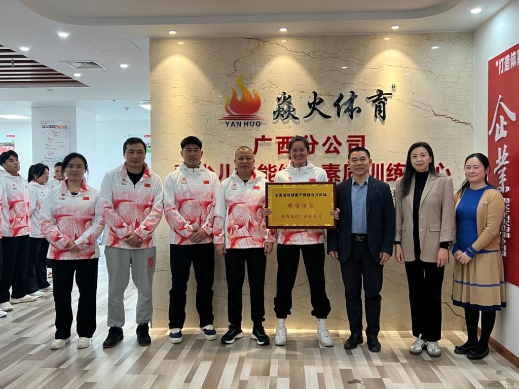 3月6日,体育师范学院与焱火体育广西分公司举行全国运动健康产教融合共同体理事单位揭牌仪式,学院院长苏祝捷、副院长祁丽、覃冬霞老师,焱火体育广西分公司董事长韦红带领全体行政人员和教练员出席活动。