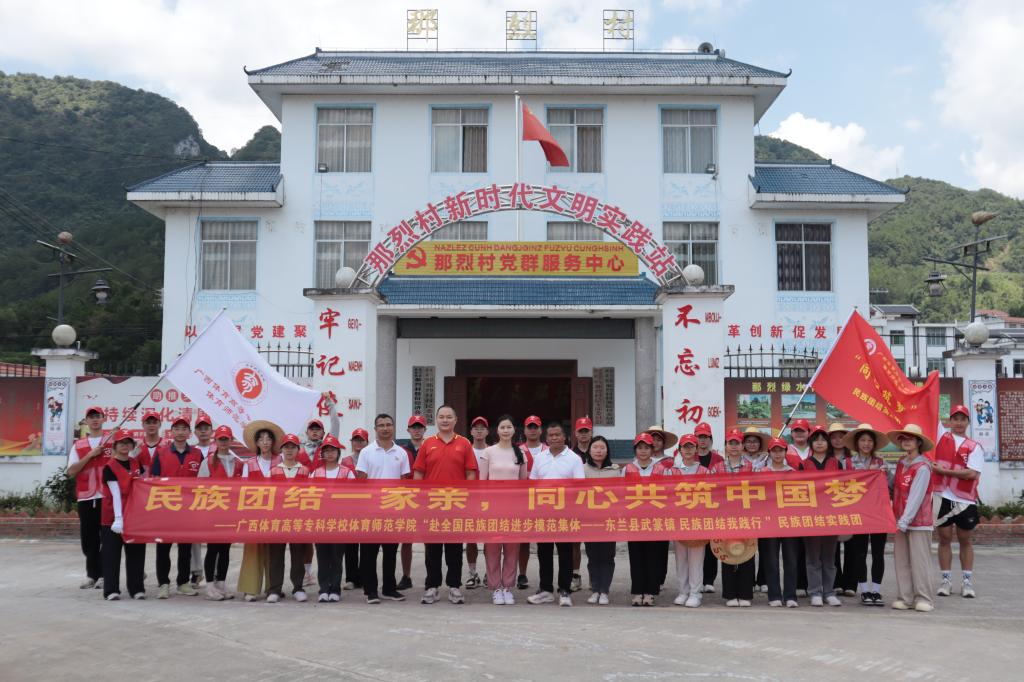 “同心筑梦”民族团结实践团由学校体育师范学院党总支副书记,学院团委书记、副书记,“青马”工程学员及青年志愿者共33名师生代表组成。本次“三下乡”社会实践活动以“中华民族一家亲,同心共筑中国梦”为主题,以师范类专业为特色,在东兰县武篆镇党委、武篆镇那烈村村委、长江镇兰阳村村委的大力支持下,深入乡镇开展一系列民族团结实践活动,为当地民族团结贡献青春力量。