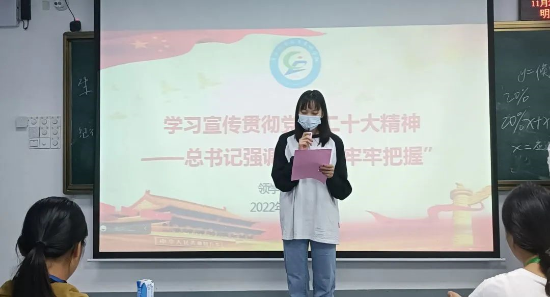 最后,校学生会执行主席廖俊龙总结到:学生会组织要把学习宣传贯彻党的二十大精神作为首要政治任务,将“全心全意服务同学”的宗旨落到实处、做到细处、干到深处,引领广大同学心怀“国之大者”,聚焦中心任务,在全面建设社会主义现代化国家的火热实践中争当先锋,以朝气蓬勃、昂扬向上的青春面貌坚定跟党走,奋进新征程,深刻践行“请党放心、强国有我”的铮铮誓言。