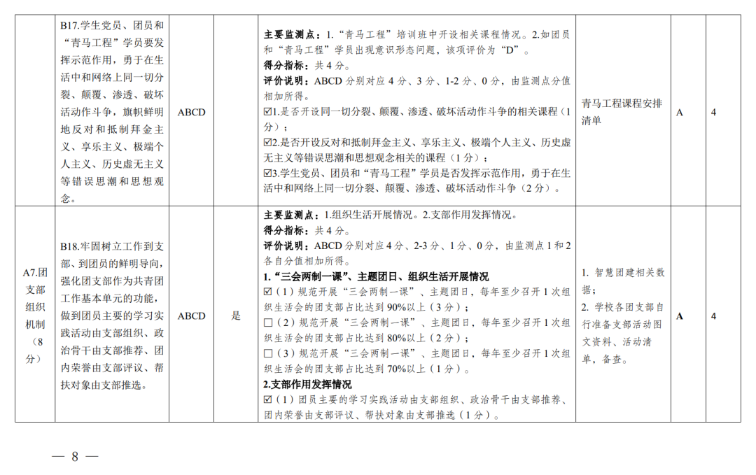 一是着力增强团支部政治教育功能,推动理论学习规范化,每个校团委委员至少联系一个基层团支部,指导团支部严格落实“三会两制一课”基本制度,我校开展率为100%。