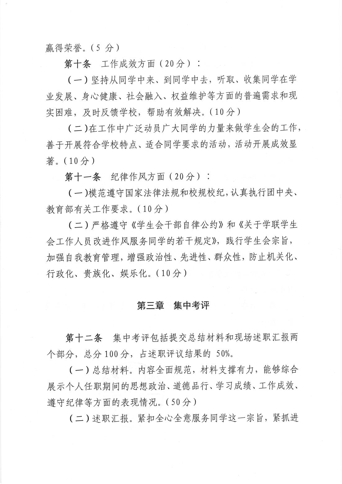 (六)校学生会主席团成员和工作部门成员每学期向评议会述职,评议会以学生代表为主,学校党委学生工作部、学校团委等共同参与。