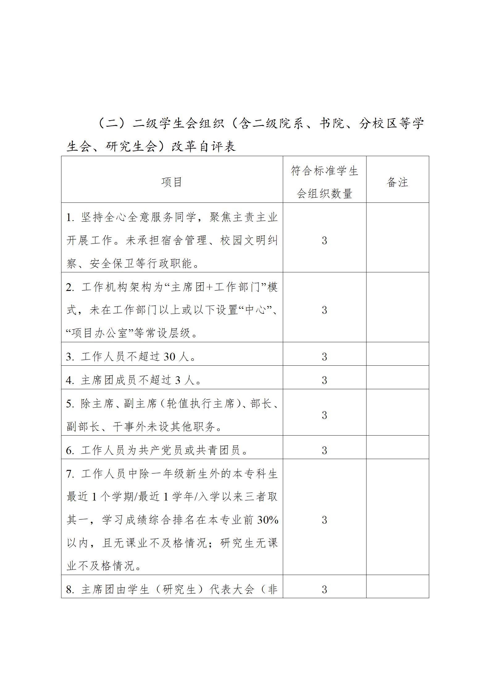 二级学生会组织改革自评表