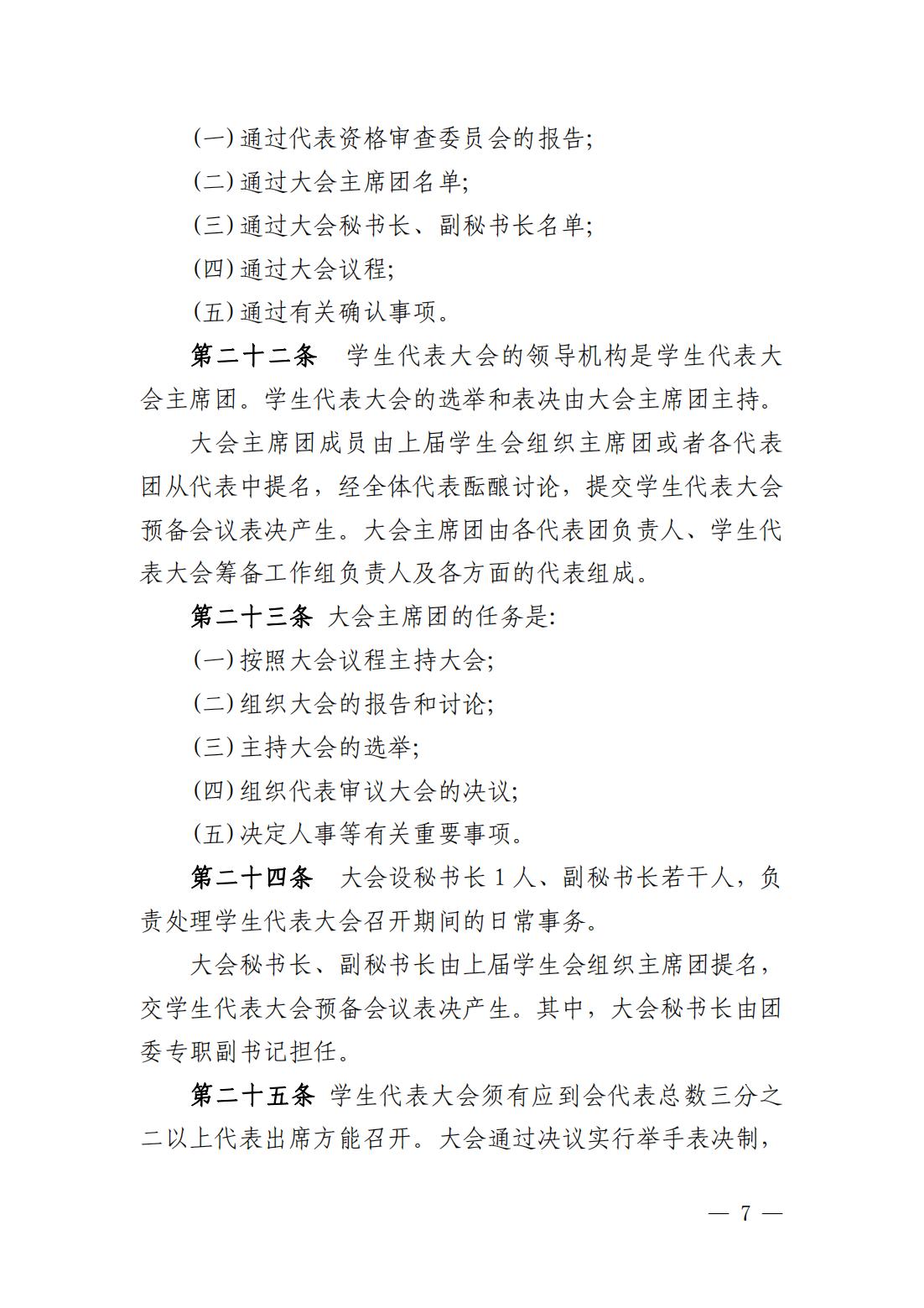 (七)讨论和决定应由学代会决定的其他重大事项等。