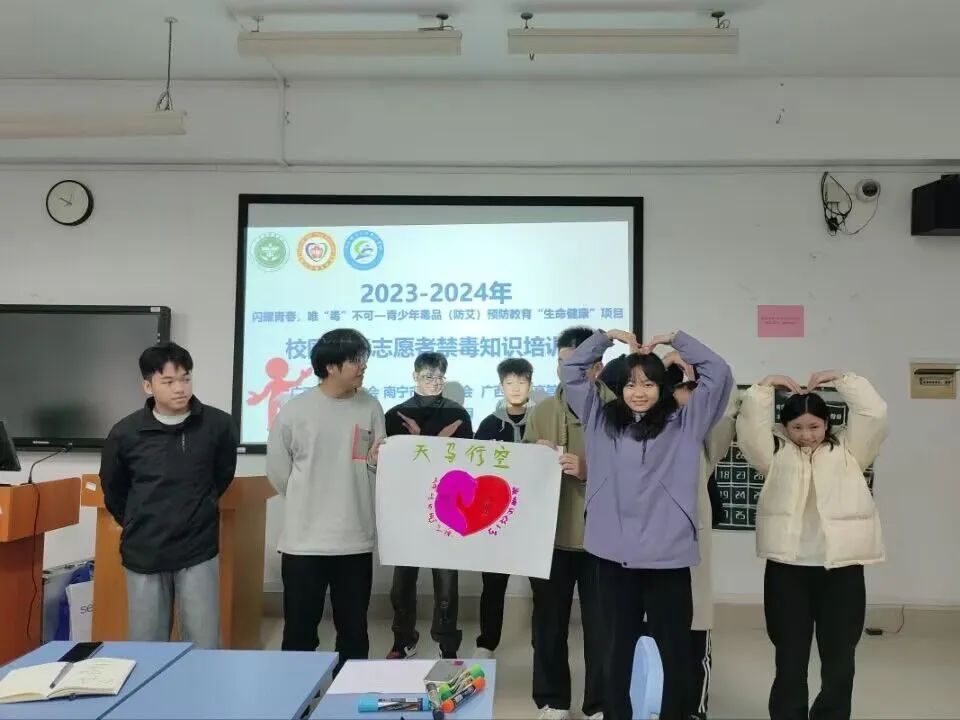 为了提高我校学生对毒品、艾滋病危害的认识,增强自我防范意识,营造健康校园文化。1月11日,我校青年志愿者协会在长岗校区开展了“禁毒防艾,珍爱生命”培训活动,邀请了南宁市禁毒协会禁毒专员到校为同学们开展禁毒防艾知识培训。禁毒专员通过破冰游戏、互问互答等方式检验同学们对禁毒防艾知识的掌握程度。同学们积极参与,现场氛围轻松活跃。