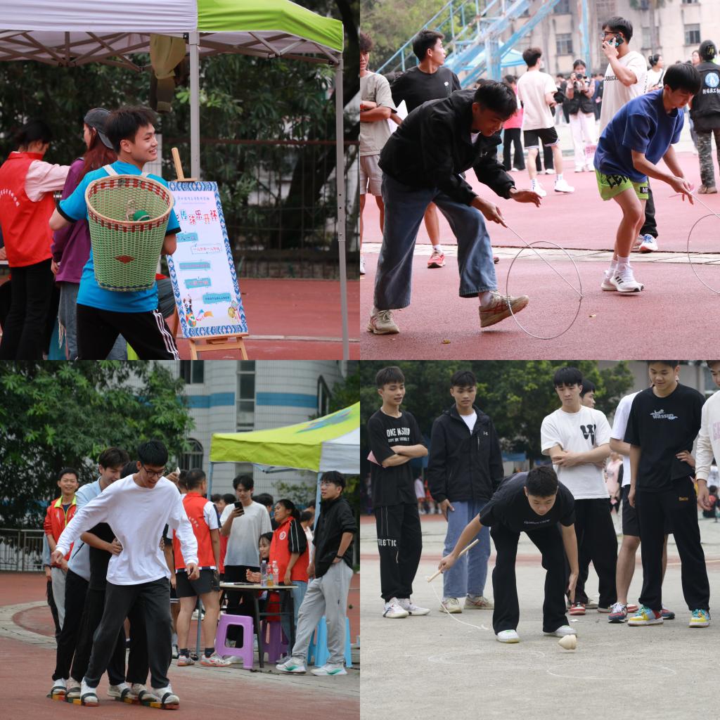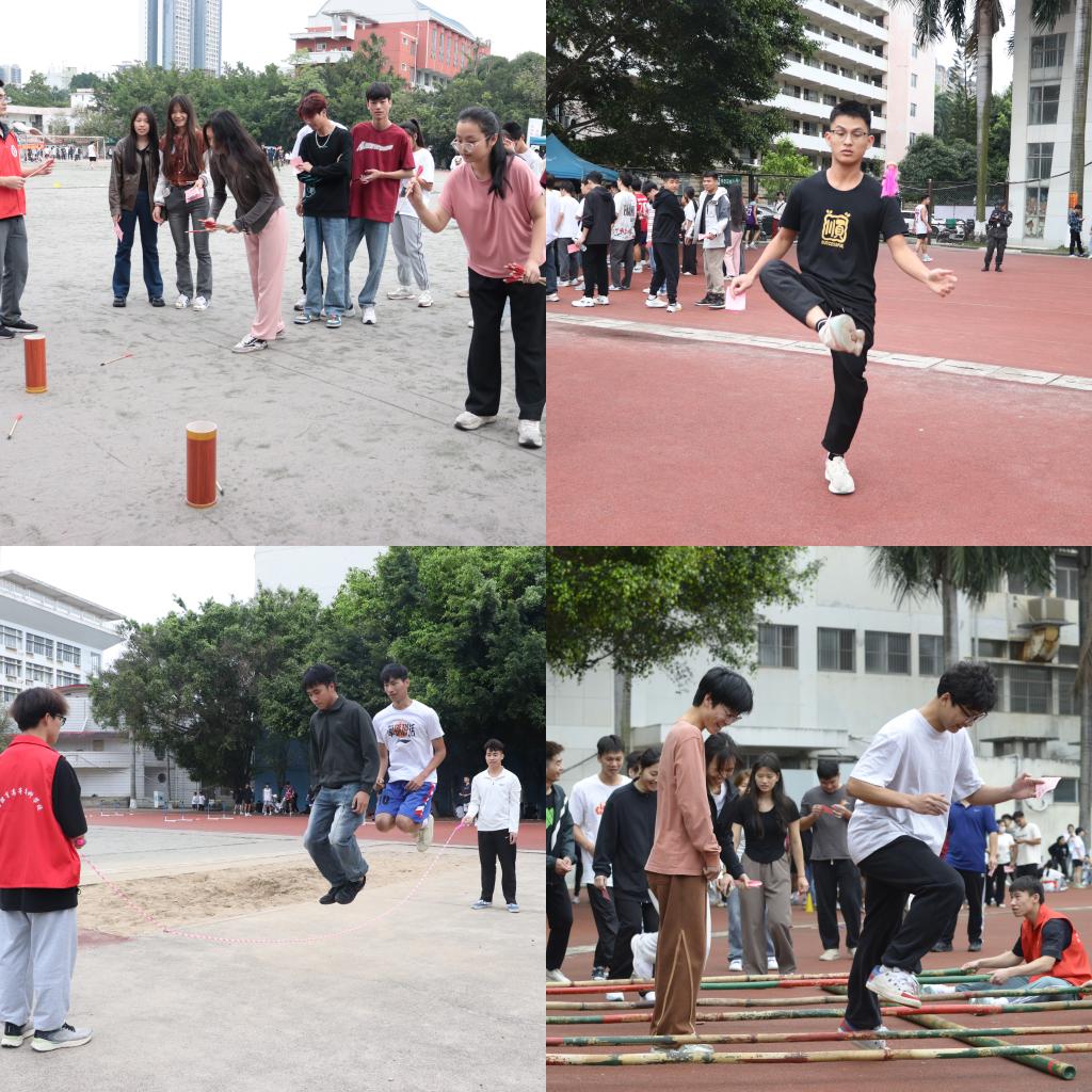 开幕式结束后,同学们踊跃参加“三月三”民族传统文化体验展示系列活动,民族传统体育体验区设有背篓传绣球、打陀螺、三人板鞋、投壶、踢毽子和滚铁环等民族体育项目;民族特色文化体验区设有描绘壮美广西DIY团扇及书签、杆舞飞扬、赶歌圩、尝美食等独具壮乡特色的活动。现场锣鼓喧天,气氛热烈,同学们都沉浸在“三月三”节日的喜悦之中。