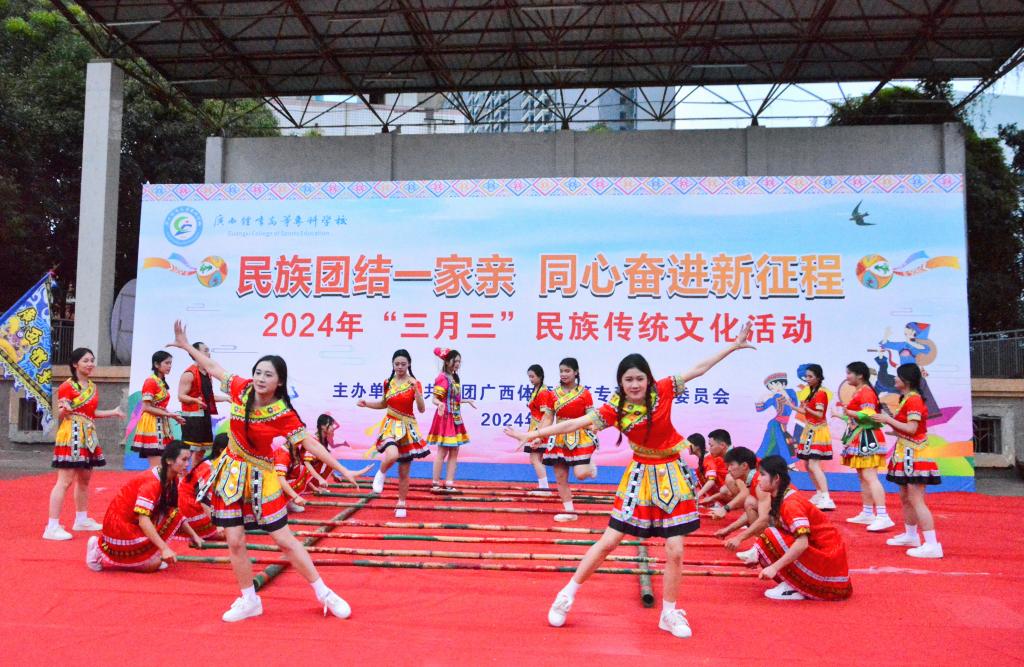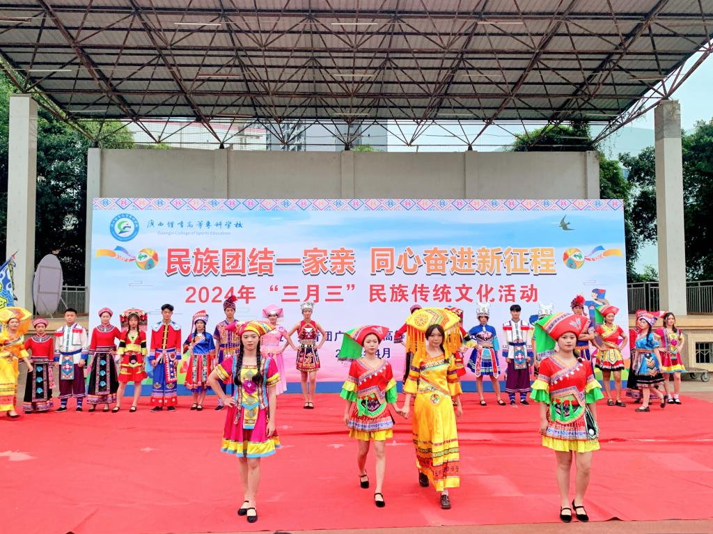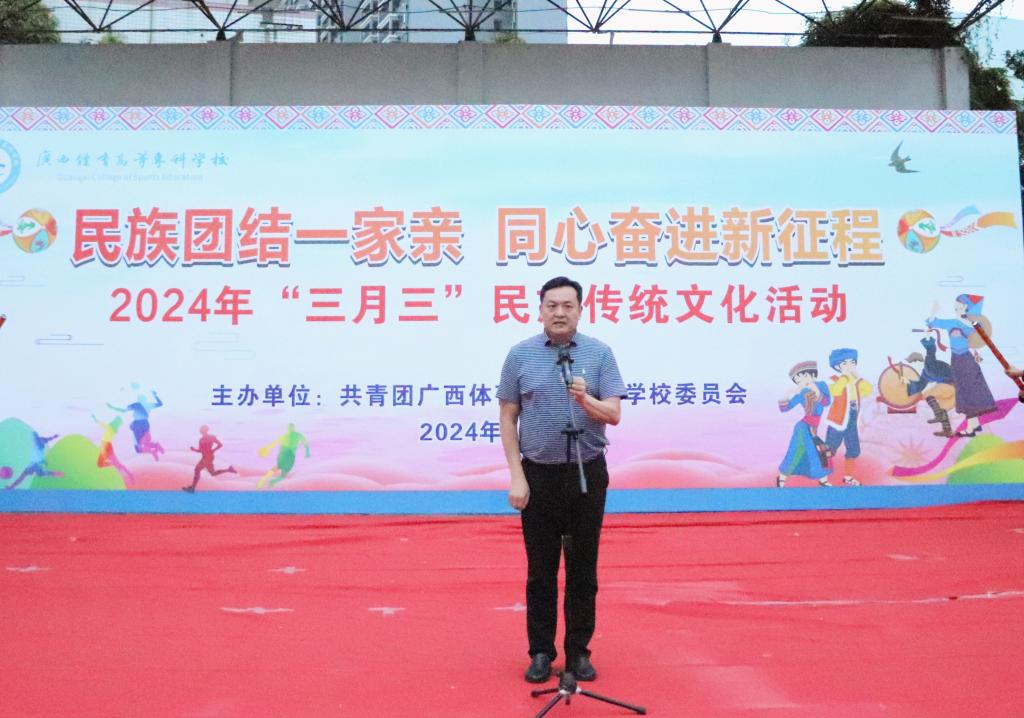 为深入贯彻落实习近平总书记关于加强和改进民族工作的重要思想和习近平总书记对广西重大方略要求,以铸牢中华民族共同体意识为主线,进一步推动中华优秀传统文化传承发展,持续深入推进中国传统节日振兴,引导广大师生在积极参与中传承节日文化、展现中国精神、增强文化自信,凝聚奋进新时代新征程的强大精神力量。4月9日下午,我校在长岗校区田径场举行“民族团结一家亲 同心奋进新征程”2024年“三月三”民族传统文化活动。学校党委副书记邱团、学工与招生就业处处长覃琳、校团委书记何培、各学院党总支副书记及团委书记参加了本次活动。