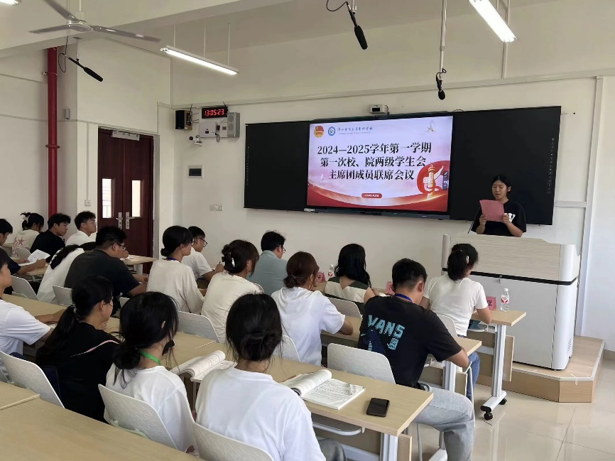 9月20日中午,我校团委组织校、院两级学生会开展本学期第一次主席团成员联席会,会议在教学楼北楼204教室进行,学校团委书记何培以及团委老师们出席本次会议,会议由校学生会秘书处胡新欣主持。