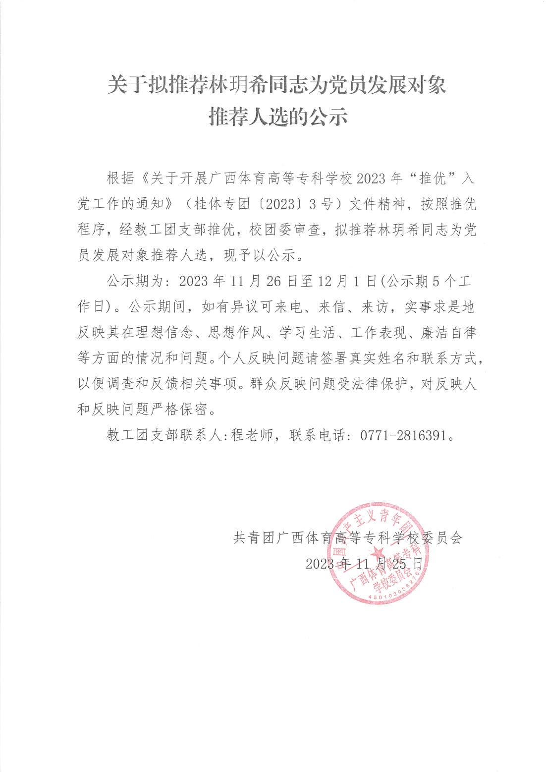 关于拟推荐林玥希同志为党员发展对象推荐人选的公示
