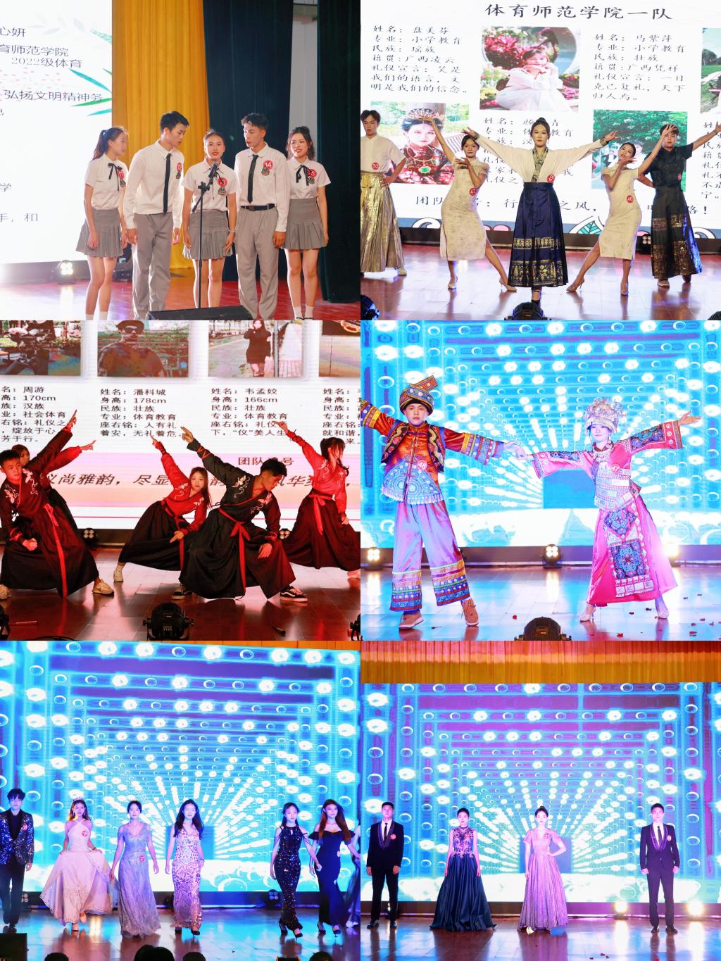 比赛共分为三个环节。一是团队风采展示,参赛队伍以优雅自信的姿态,逐一展示了蹲姿、走姿、站姿、介绍礼、引导礼、鞠躬礼等一系列礼仪动作。二是团队才艺展示,选手们通过舞蹈、礼仪情景剧等形式展现了他们的多才多艺的风采。三是团队晚礼服展示,每位参赛选手都依据独到的见解和充满创意的设计,巧妙地将民族风、国风、现代风相融合,呈现出无与伦比的魅力。