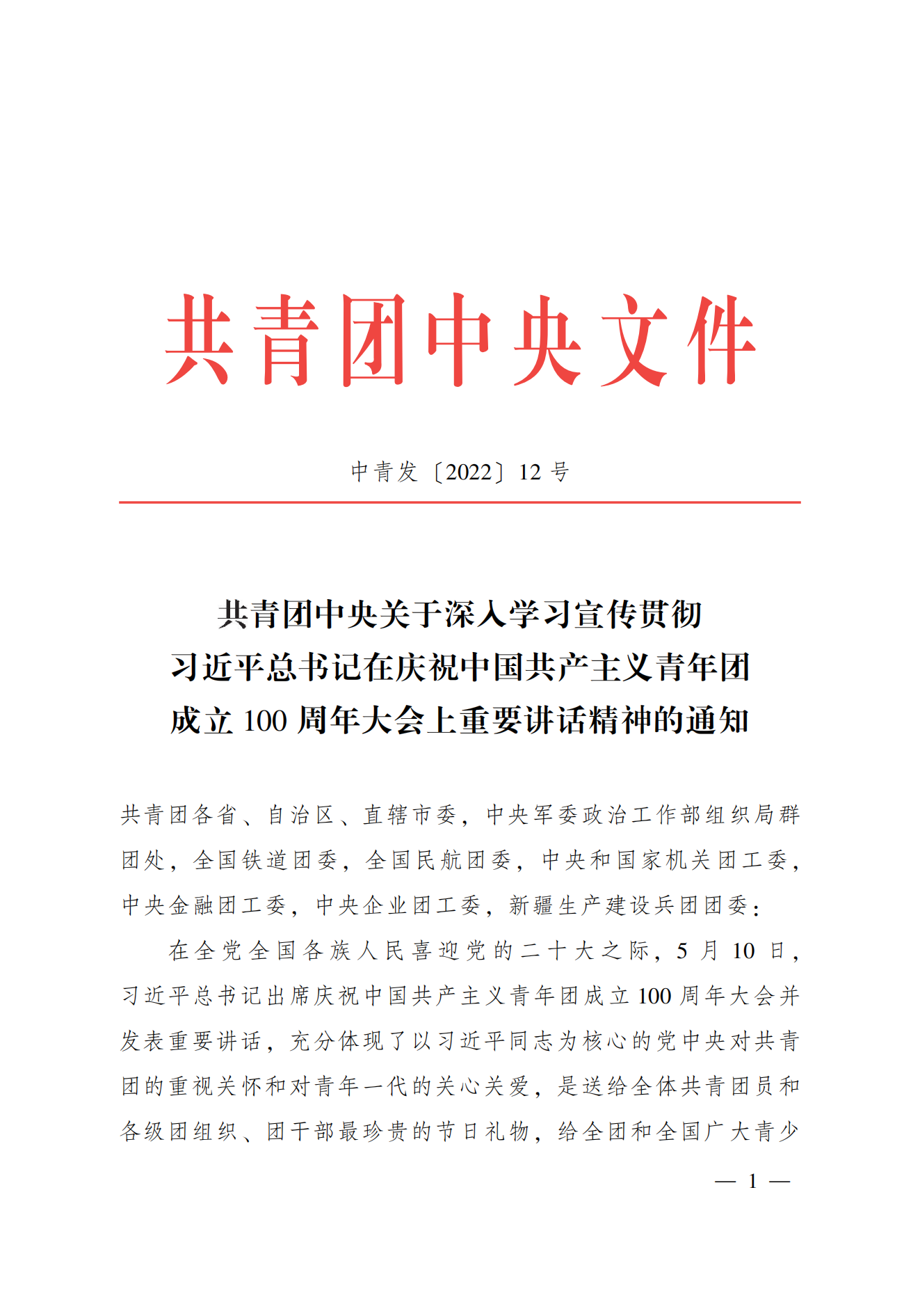 共青团中央关于深入学习宣传贯彻习近平总书记在庆祝中国共产主义青年团成立100周年大会上重要讲话精神的通知.pdf