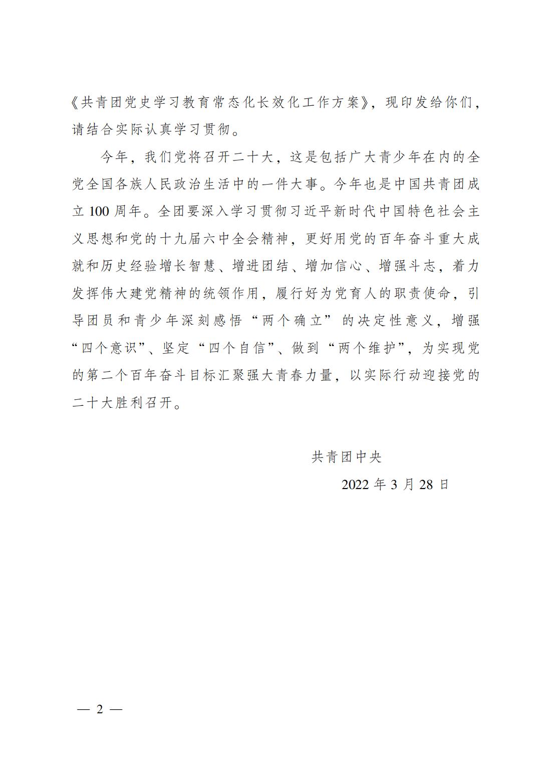 共青团中央关于印发《共青团党史学习教育总结》和《共青团党史学习教育常态化长效化工作方案》的通知.pdf