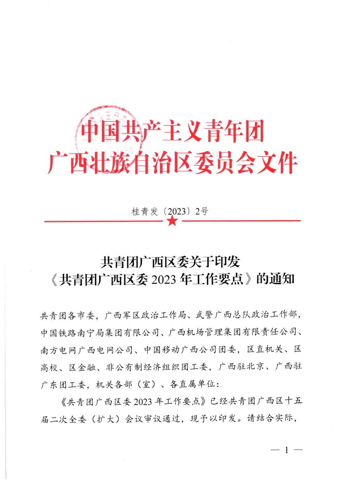 共青团广西区委关于印发《共青团广西区委2023年工作要点》的通知