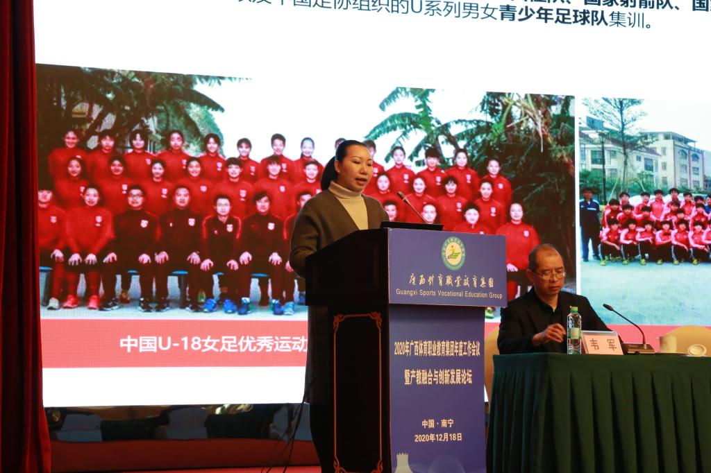 学校副校长、副理事长覃杨彬教授作广西体育职业教育集团2020年工作报告