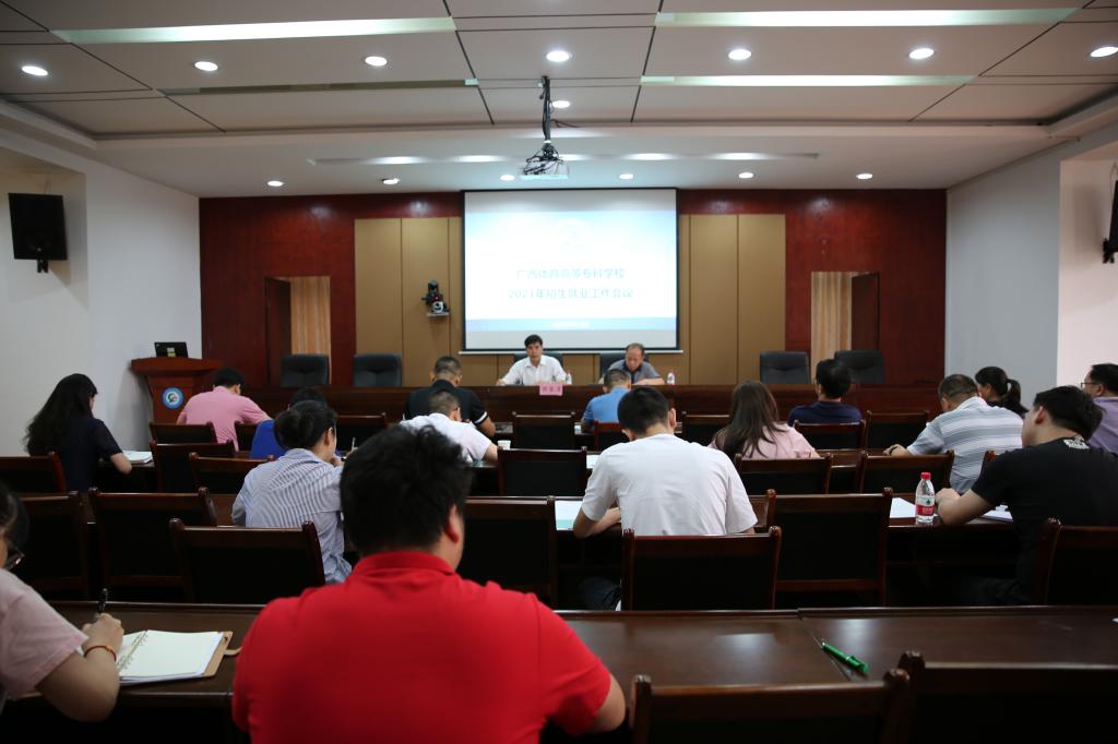 6月10日上午,学校召开2021年招生就业工作会议。胡英清校长、覃杨彬副校长出席会议。各学院党总支书记、院长、党总支副书记,分管招生工作领导,宣传部、教务处和学工处、后勤处主要负责人,全体毕业班辅导员,招生就业处全体成员参加会议。会议由覃杨彬副校长主持。