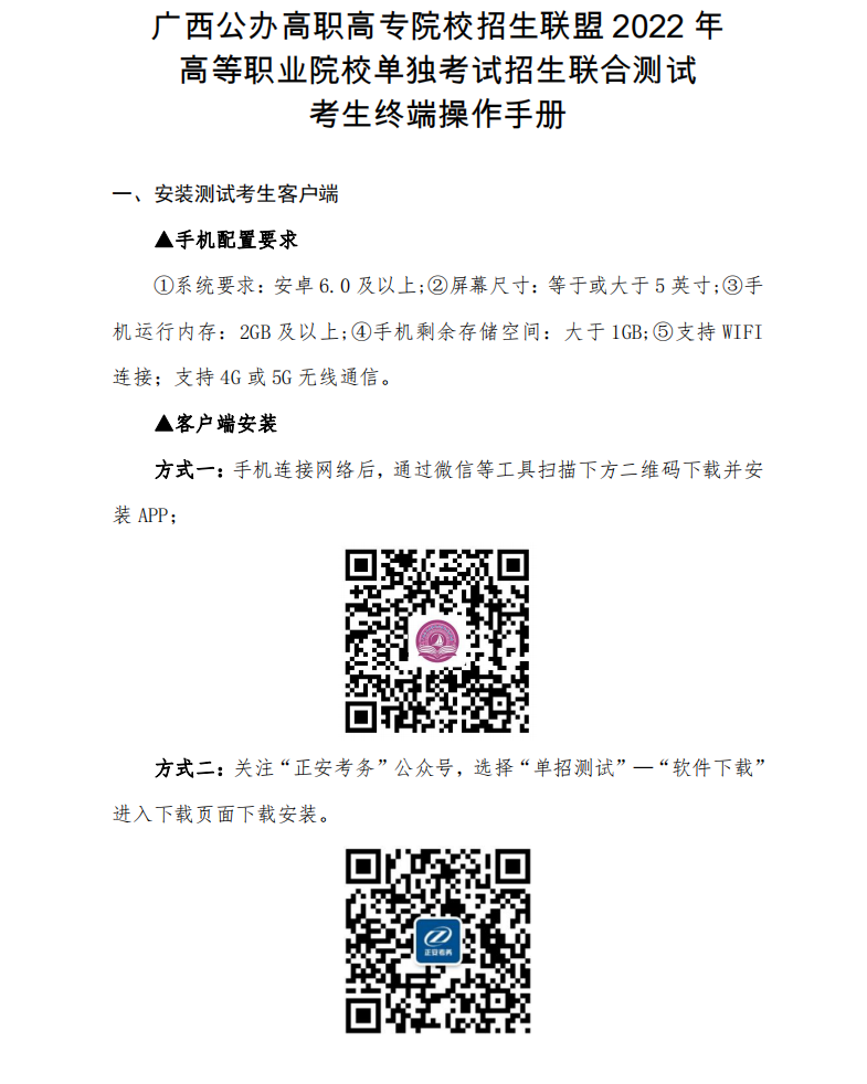 单独考试招生联合测试--考生终端操作手册